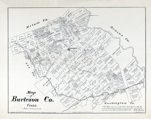 1879 Map of Burleson County Texas - 22"x28" Matte is backordered and will ship as soon as it is back in stock.