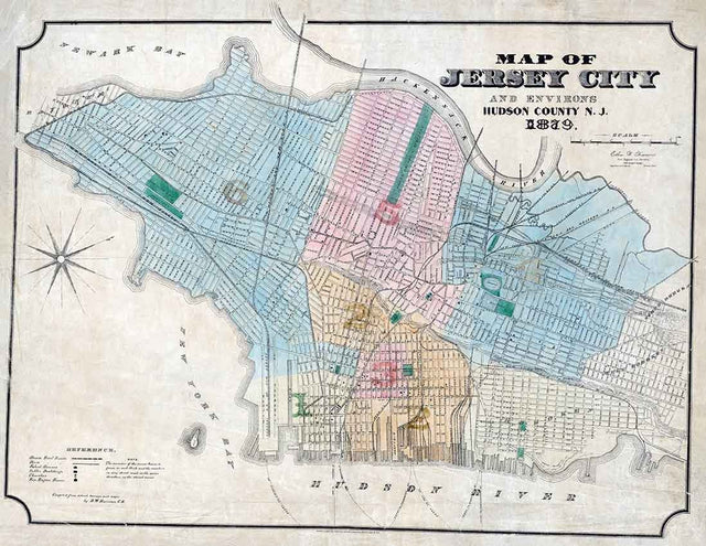 1879 Map of Jersey City Hudson County New Jersey - 16"x20"Matte is backordered and will ship as soon as it is back in stock.