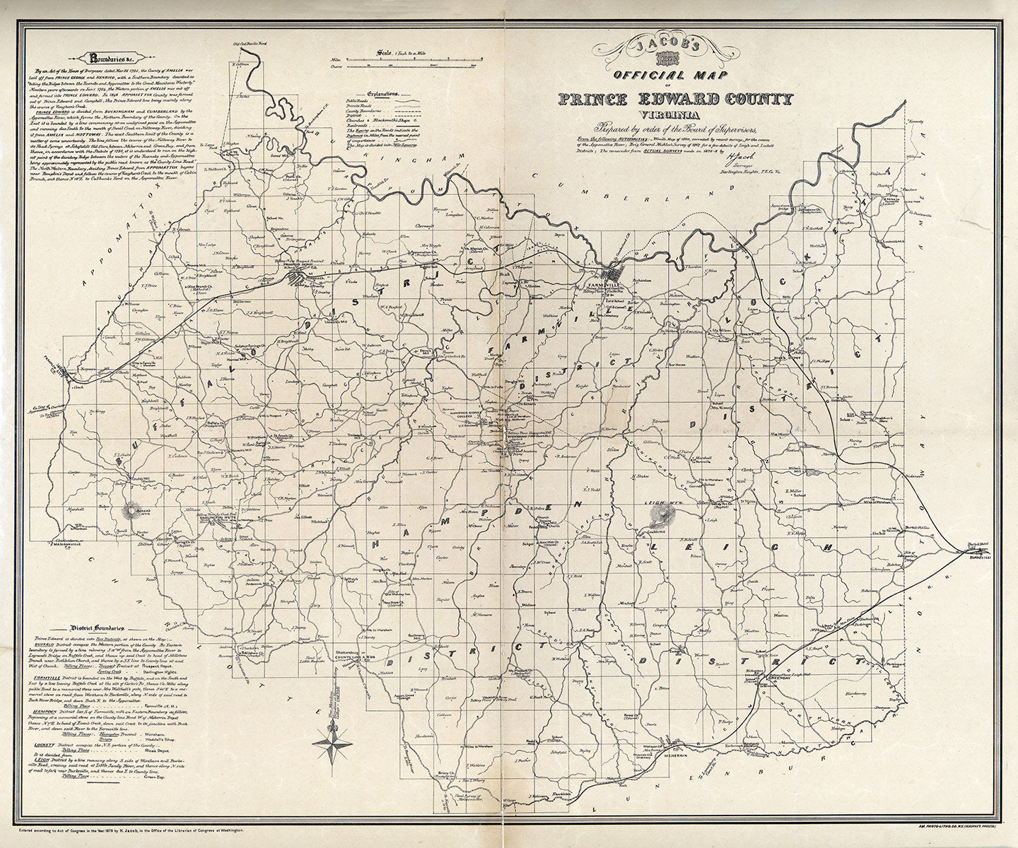1879 Map of Prince Edward County Virginia