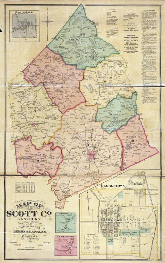 Map shows historical places, buildings, family names, towns, roads, and more!