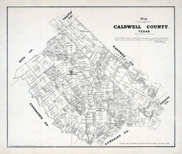 1880 Farm Line Map of Caldwell County Texas