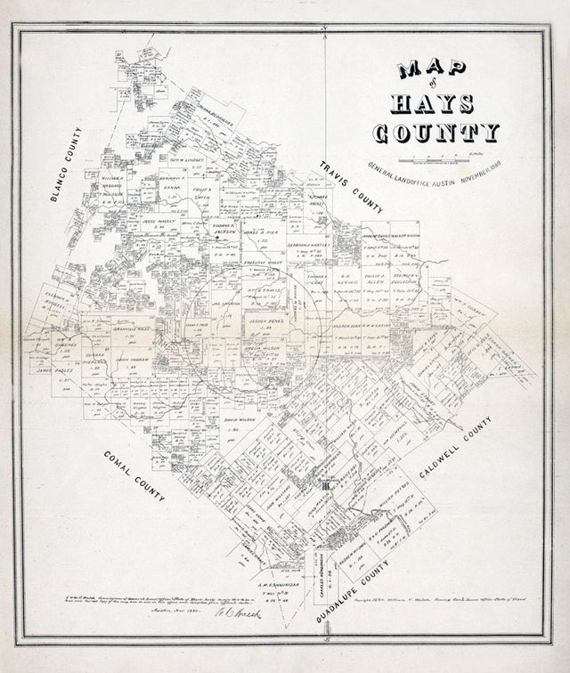 1880 Farm Line Map of Hays County Texas - 20" x 24" Matte is backordered and will ship as soon as it is back in stock.