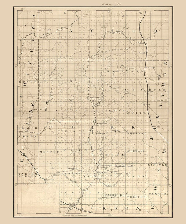 1880 Map of Clark County Wisconsin - 16" x 20" Matte is backordered and will ship as soon as it is back in stock.