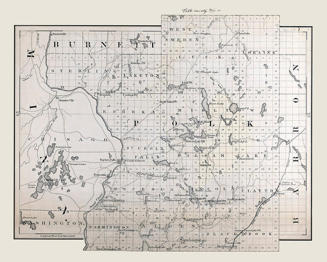 1880 Map of Polk County Wisconsin