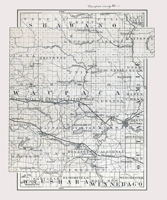1880 Map of Waupaca County Wisconsin - 16" x 20" Matte is backordered and will ship as soon as it is back in stock.