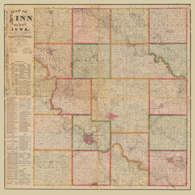 1881 Farm Line Map of Linn County Iowa - 24" x 24" Matte is backordered and will ship as soon as it is back in stock.