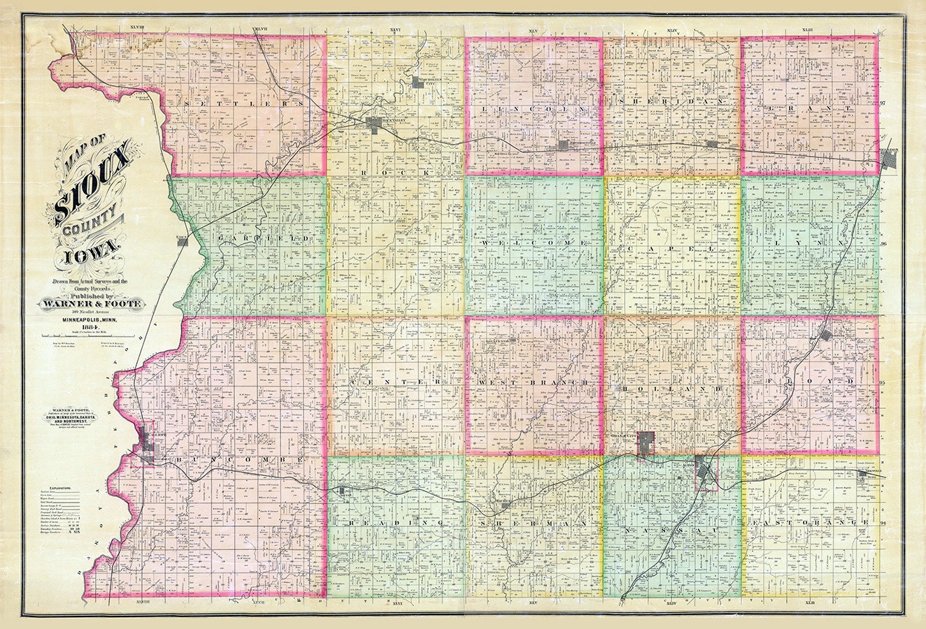This map shows roads, railroads, farm lines, houses, family names, churches, schools, towns, and more.
