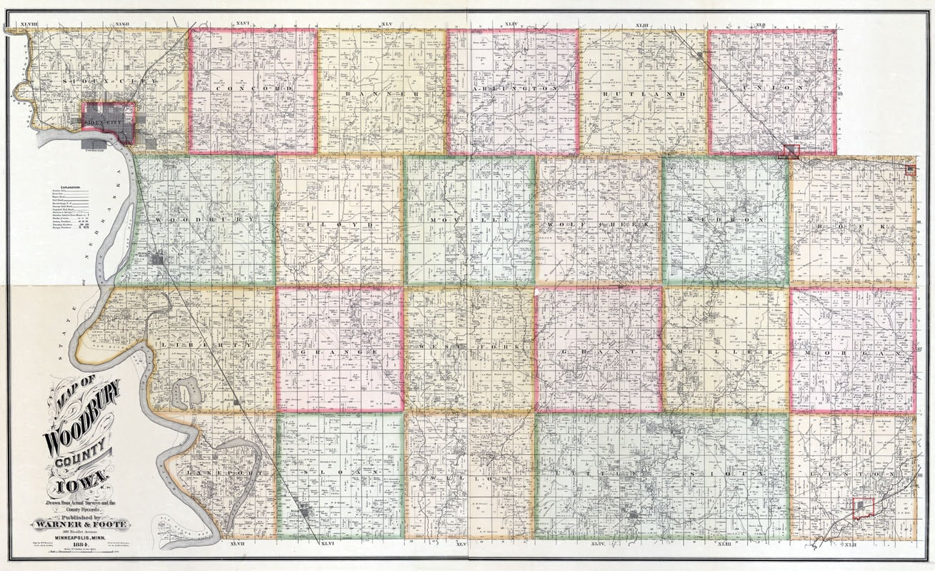 1884 Farm Line Map of Woodbury County Iowa Sioux City