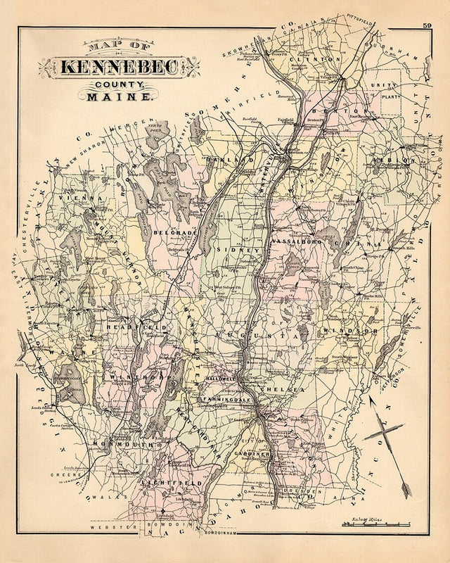 Map shows roads, rail roads, towns, school houses, water ways, and more.