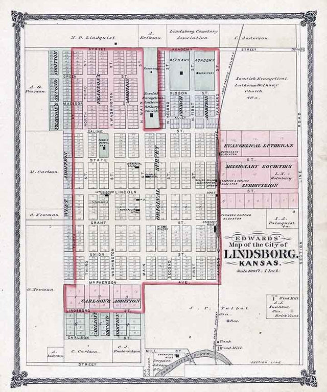 1884 Map of Lindsborg McPherson County Kansas - 16"x20"Matte is backordered and will ship as soon as it is back in stock.