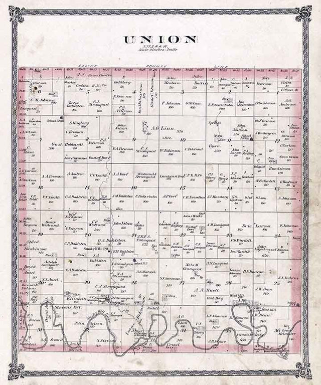 1884 Map of Union Township McPherson County Kansas - 16"x20"Matte is backordered and will ship as soon as it is back in stock.