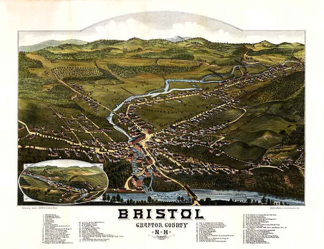 1884 Panoramic Map of Bristol Grafton County New Hampshire
