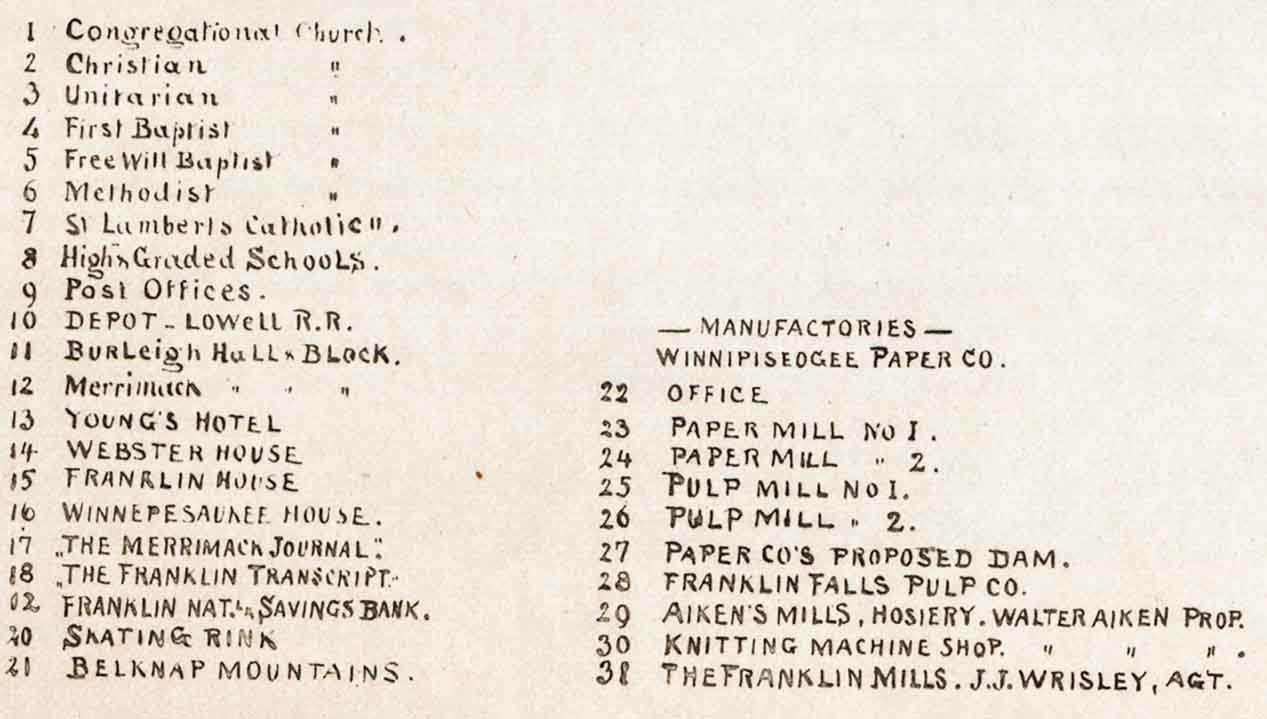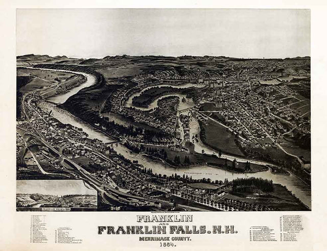 1884 Panoramic Map of Franklin New Hampshire Merrimack County Franklin Falls