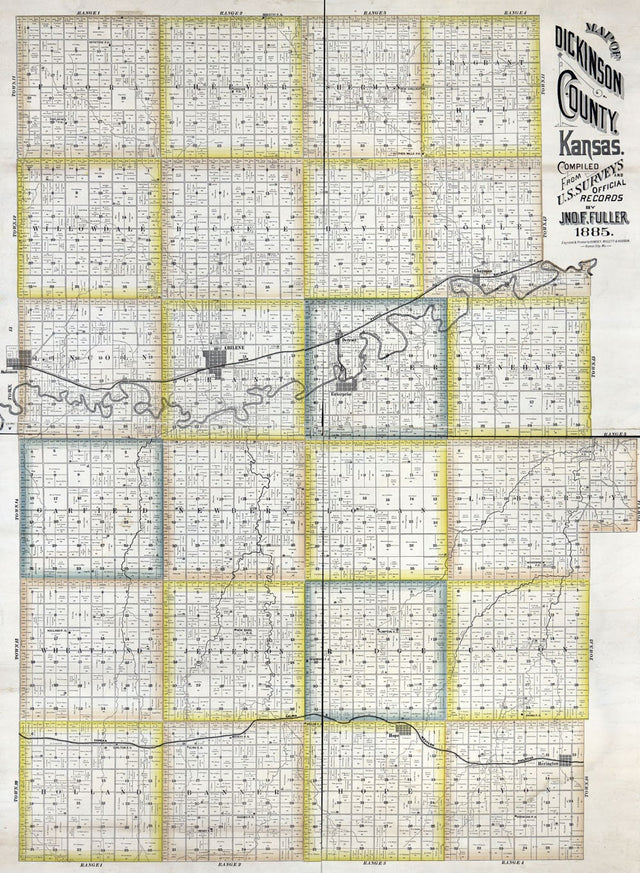 1885 Farm Line Map of Dickinson County Kansas
