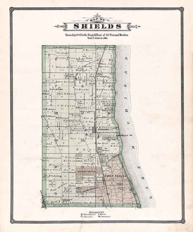 1885 Map of Shields Township Lake County Illinois