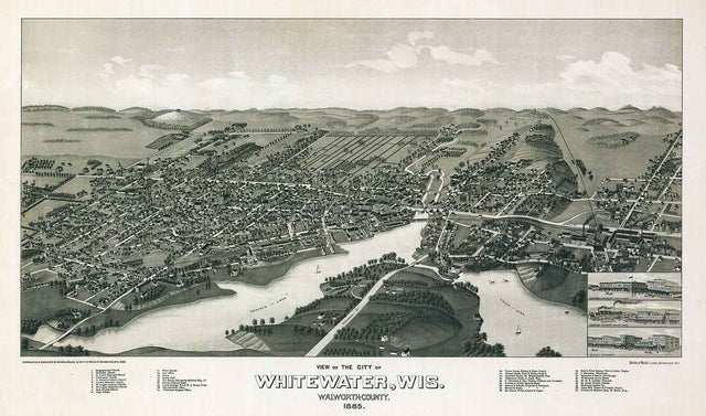 1885 Panoramic Map of Whitewater Walworth County Milwaukee
