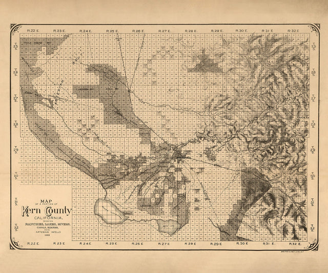1888 Map of Part of Kern County California Bakersfield - 20" x 24" Matte is backordered and will ship as soon as it is back in stock.