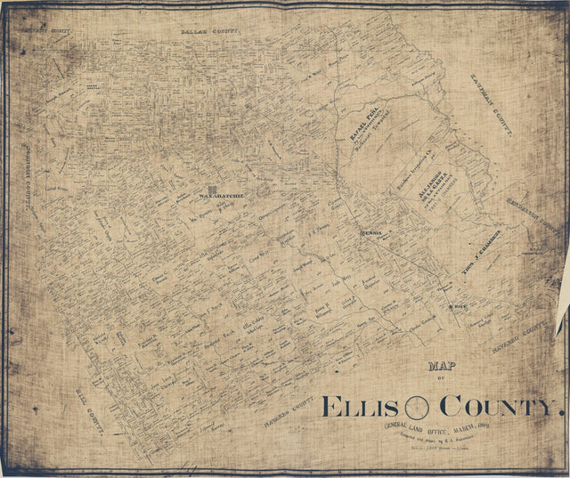 1889 Farm Line Map of Ellis County Texas - Heavy Weight Matte is backordered and will ship as soon as it is back in stock.