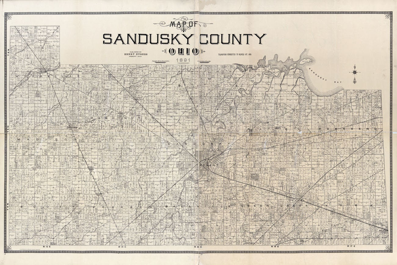 1891 Farm Line Map of Sandusky County Ohio Fremont Woodville