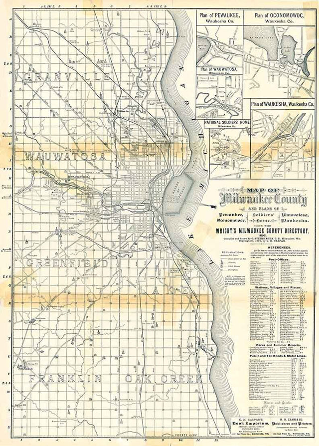 1892 Map of Milwaukee County Wisconsin Pewaukee Wauwatosa Waukesha