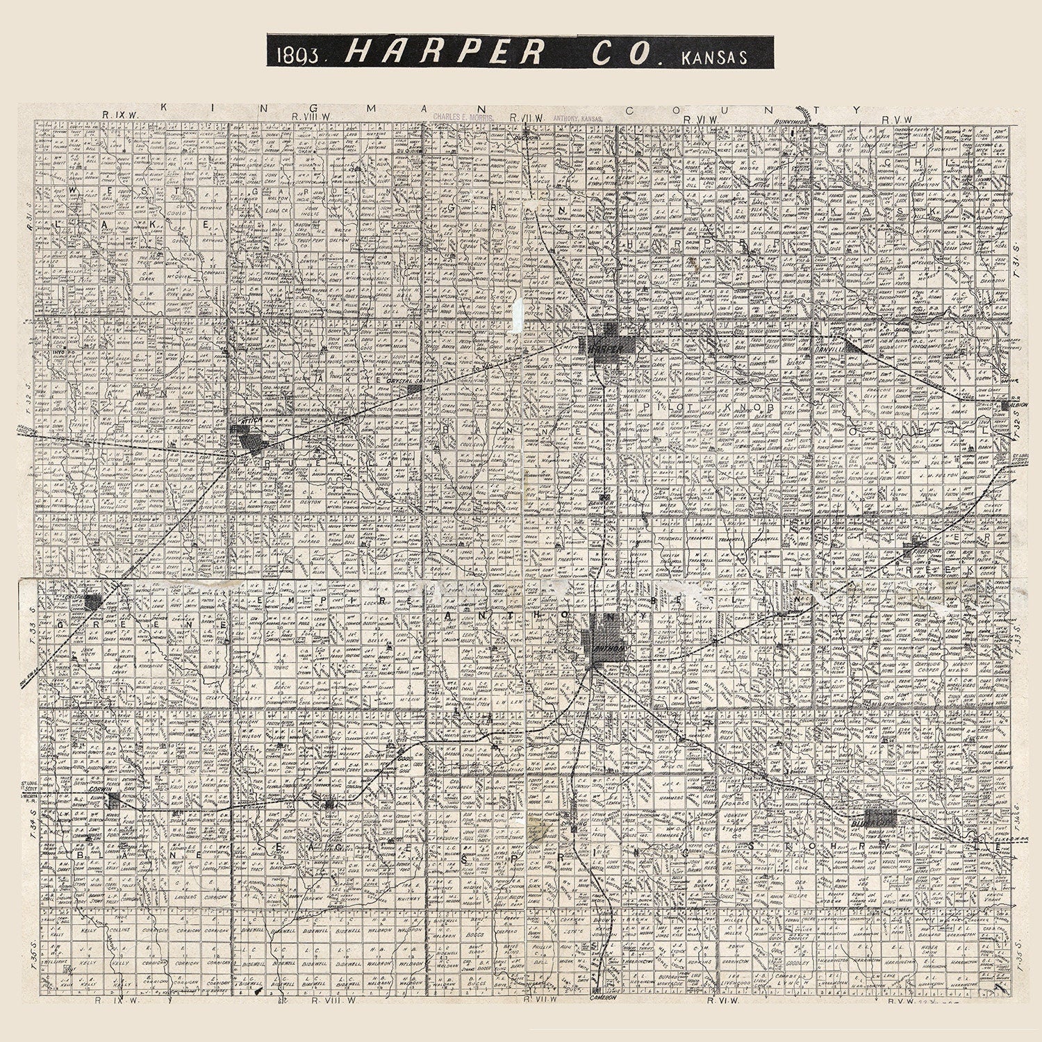 1893 Map of Harper County Kansas