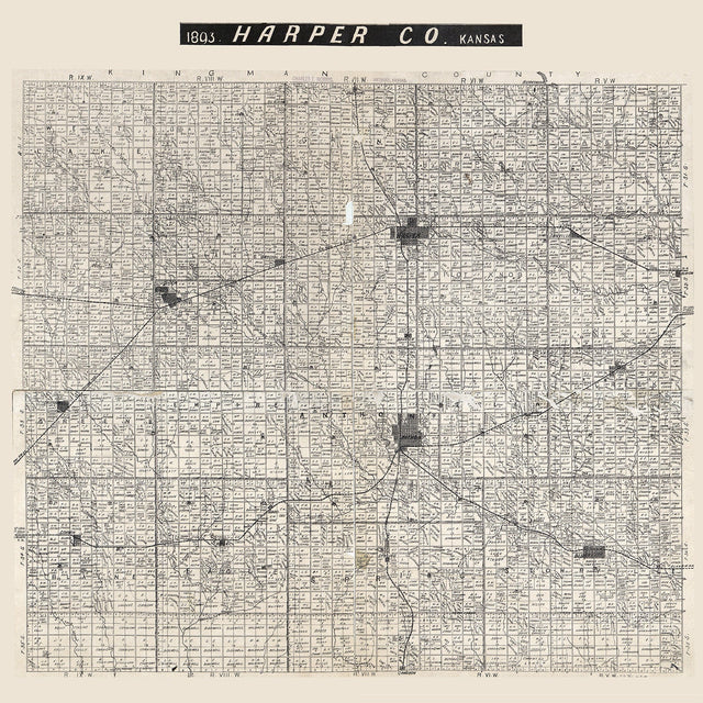 1893 Map of Harper County Kansas - 20" x 20" Matte is backordered and will ship as soon as it is back in stock.
