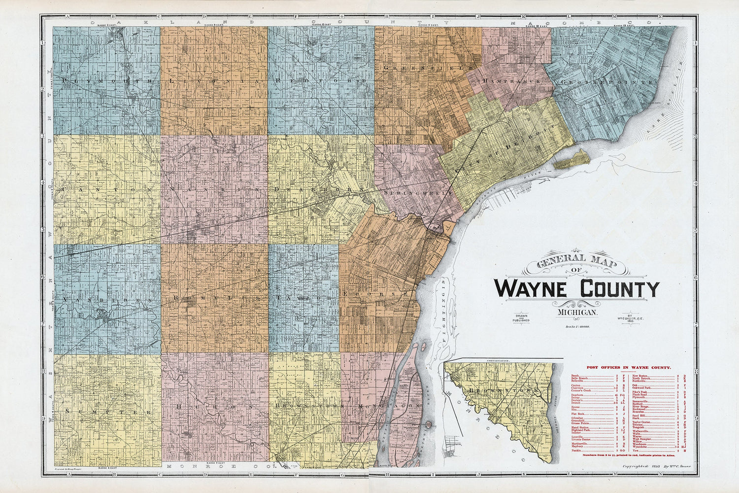 1893 Map of Wayne County Michigan - 20" x 30" Matte is backordered and will ship as soon as it is back in stock.