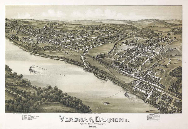 1896 Panoramic Map of Verona and Oakmont Allegheny County Pennsylvania