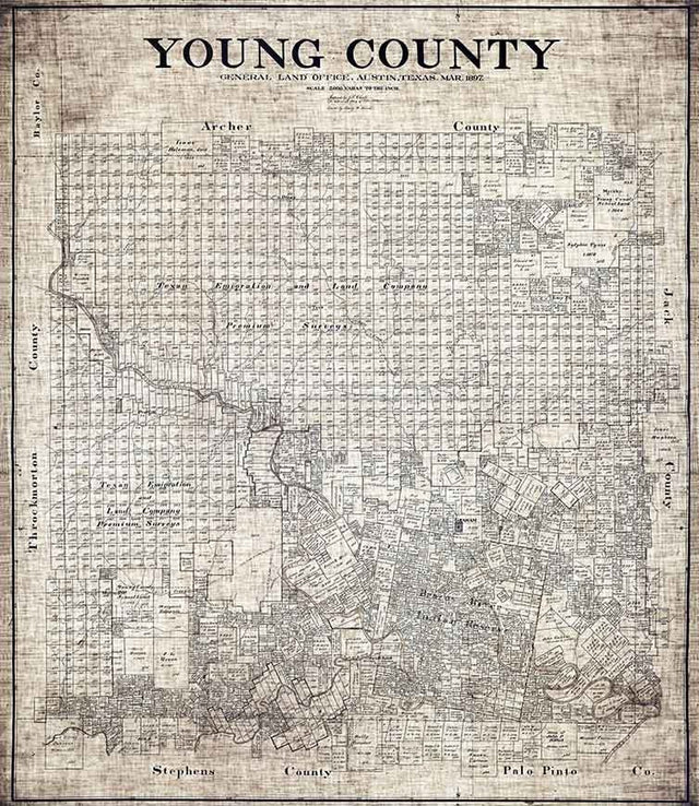 1897 Farm Line Map of Young County Texas - 20"x24"Matte is backordered and will ship as soon as it is back in stock.