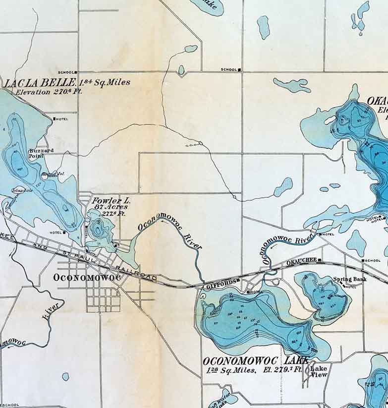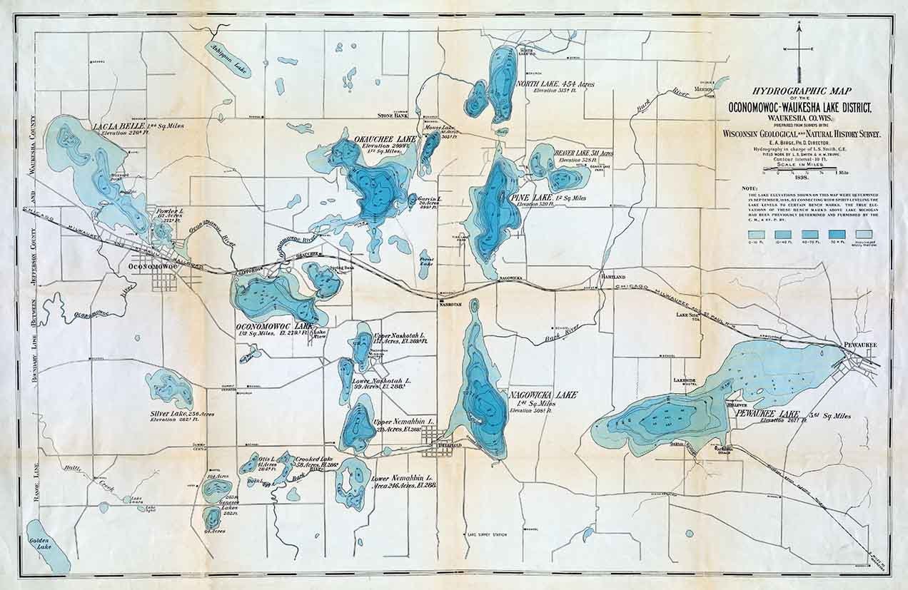 1898 Map of Oconomowoc-Waukesha Lake District Waukesha County Wisconsin