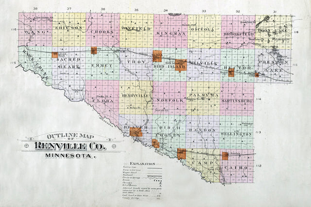 1900 Map of Renville County Minnesota - 16" x 24" Matte is backordered and will ship as soon as it is back in stock.