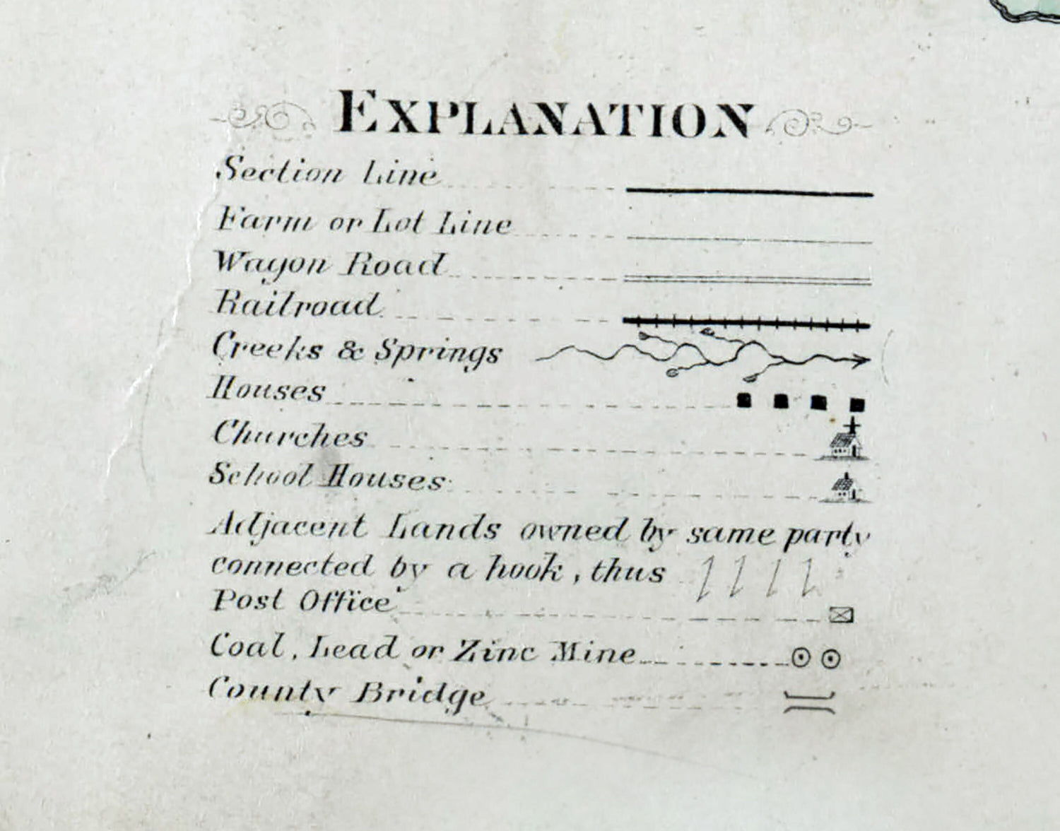 This map shows townships, towns, roads, rail roads, churches, schools, place names, and more.