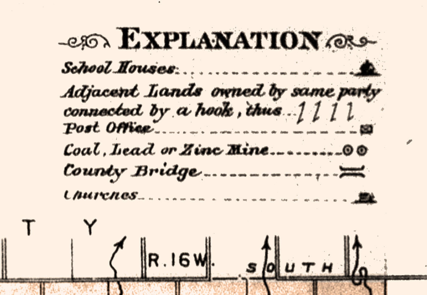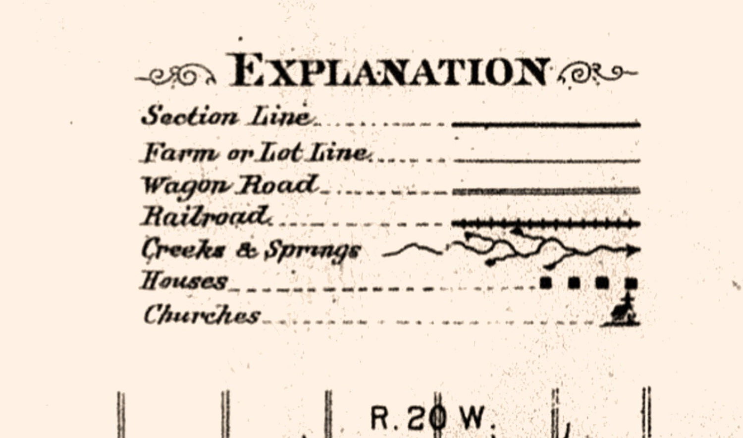 This map shows township lines, towns, roads, historic places, place names, schools, churches, and more.