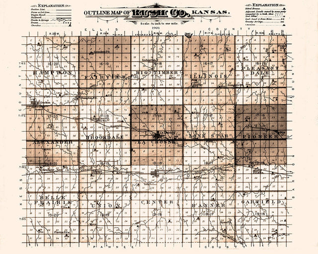 1901 Map of Rush County Kansas