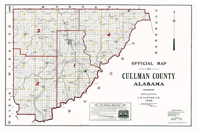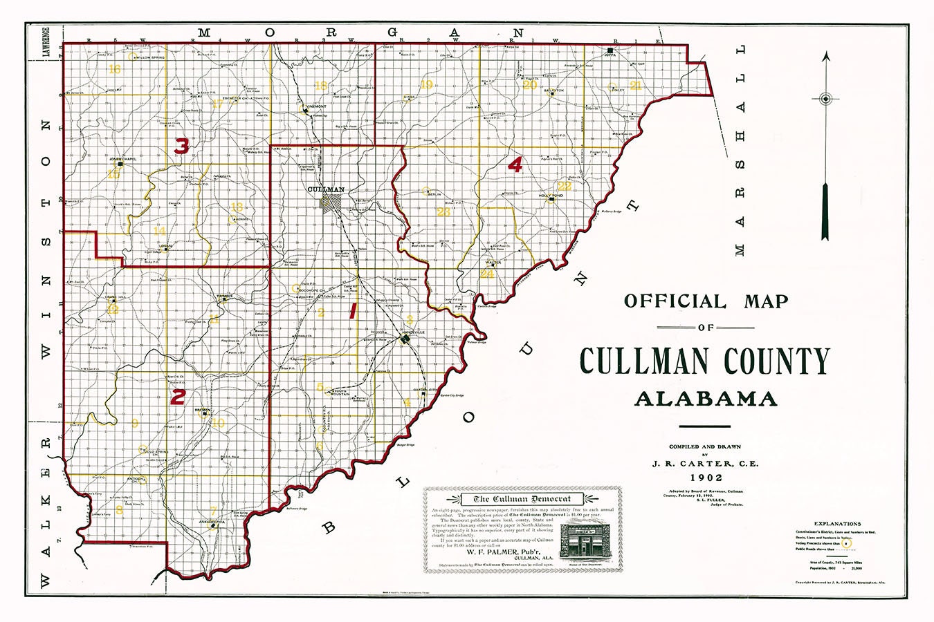 1902 Map of Cullman County Alabama - 16" x 24" Matte is backordered and will ship as soon as it is back in stock.