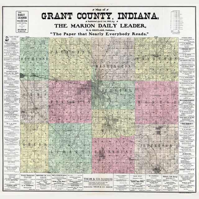 1903 Farm Line Map of Grant County Indiana - Heavy Weight Matte is backordered and will ship as soon as it is back in stock.
