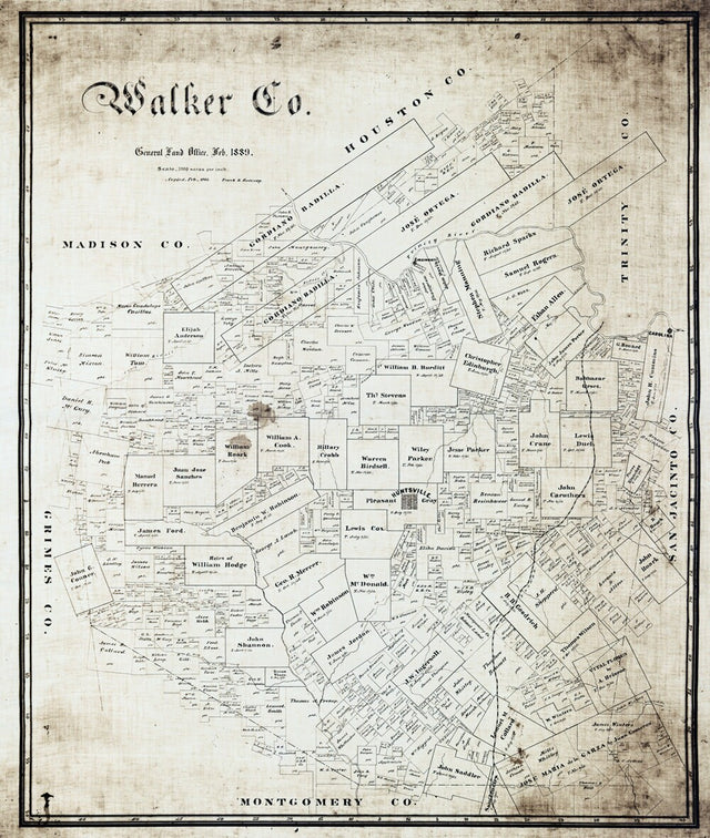 1903 Farm Line Map of Walker County Texas Huntsville - 20"x24"Matte is backordered and will ship as soon as it is back in stock.