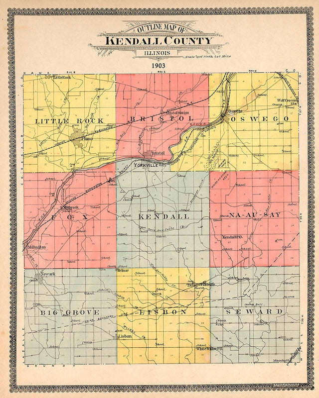 This map shows towns, roads, rail roads, schools, churches, and more.