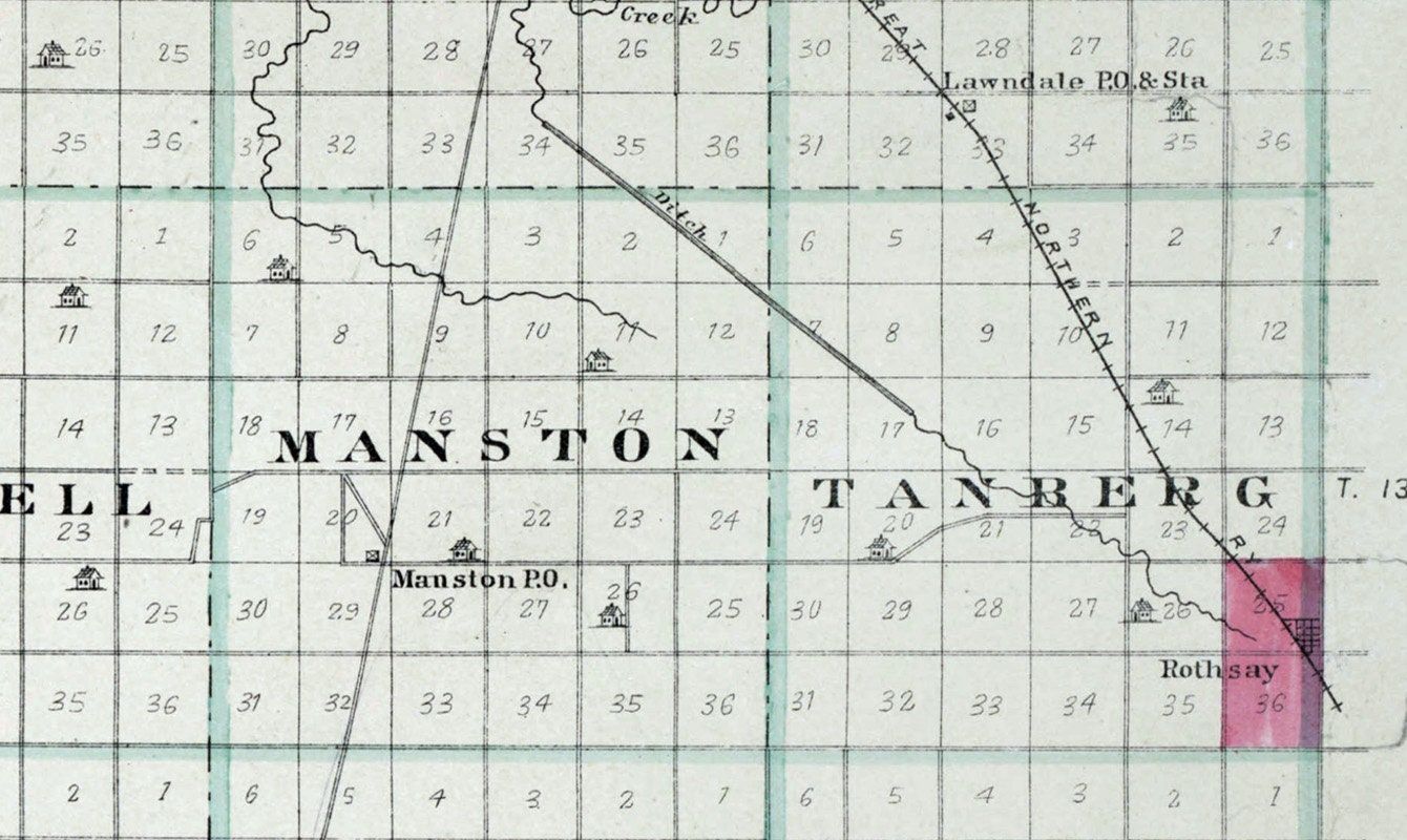 This map shows roads, rail roads, schools, churches, towns, and more.