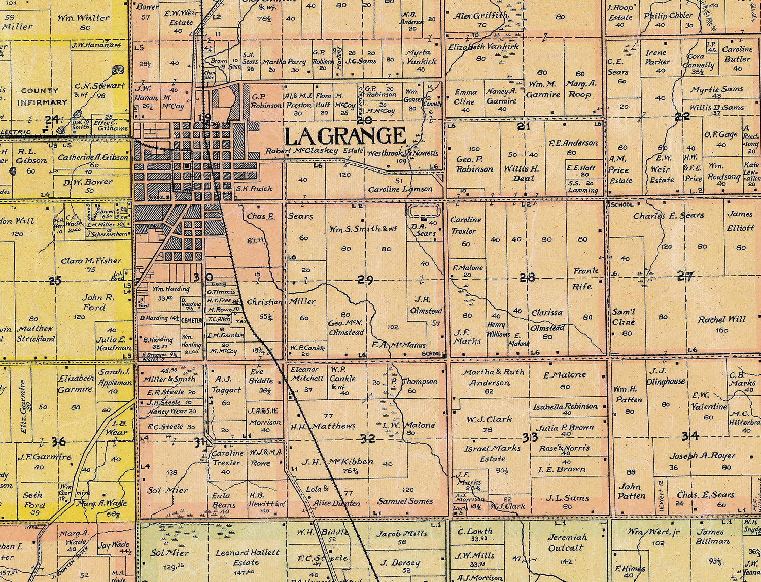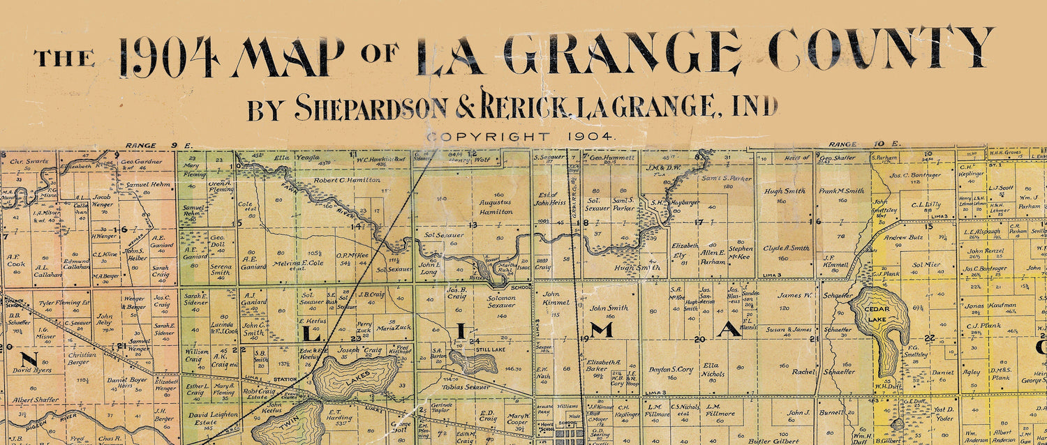 This map shows boundary lines, family names, buildlings, roads, rail roads, towns, historic places, and more.