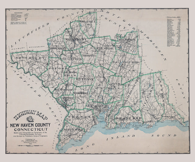 1904 Map of New Haven County Connecticut - 20" x 24" Matte is backordered and will ship as soon as it is back in stock.