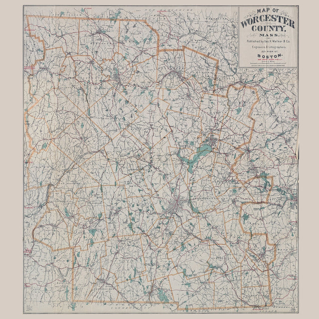 1904 Map of Worcester County Massachusetts - 20" x 20" Matte is backordered and will ship as soon as it is back in stock.