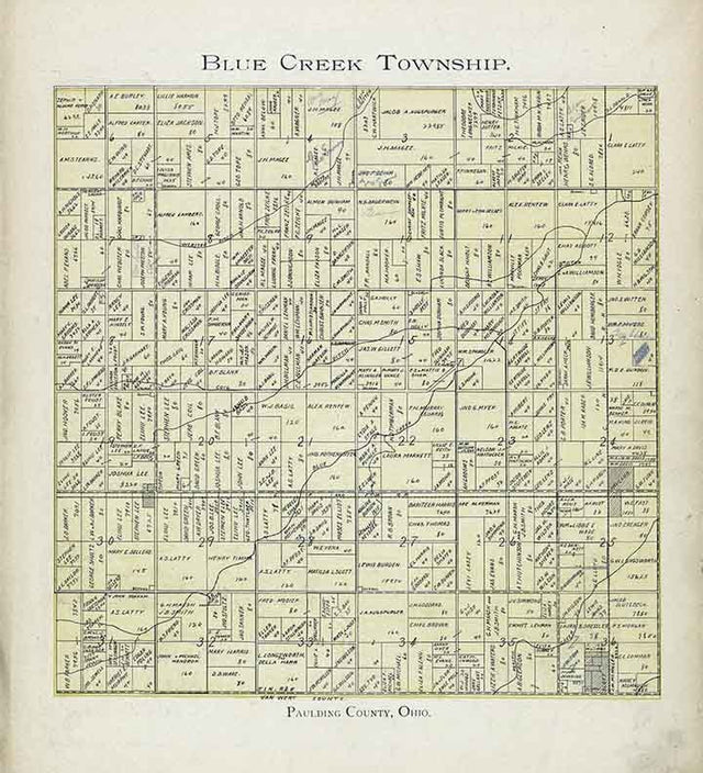 1905 Map of Blue Creek Township Paulding County Ohio - 16"x18"Matte is backordered and will ship as soon as it is back in stock.