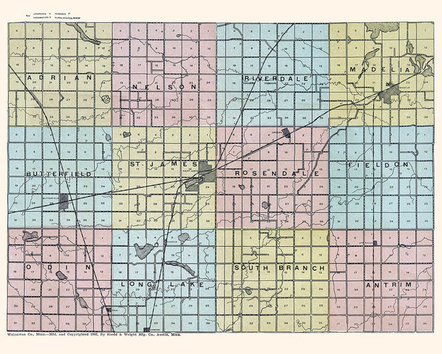 1907 Map of Watonwan County Minnesota - 16" x 20" Matte is backordered and will ship as soon as it is back in stock.