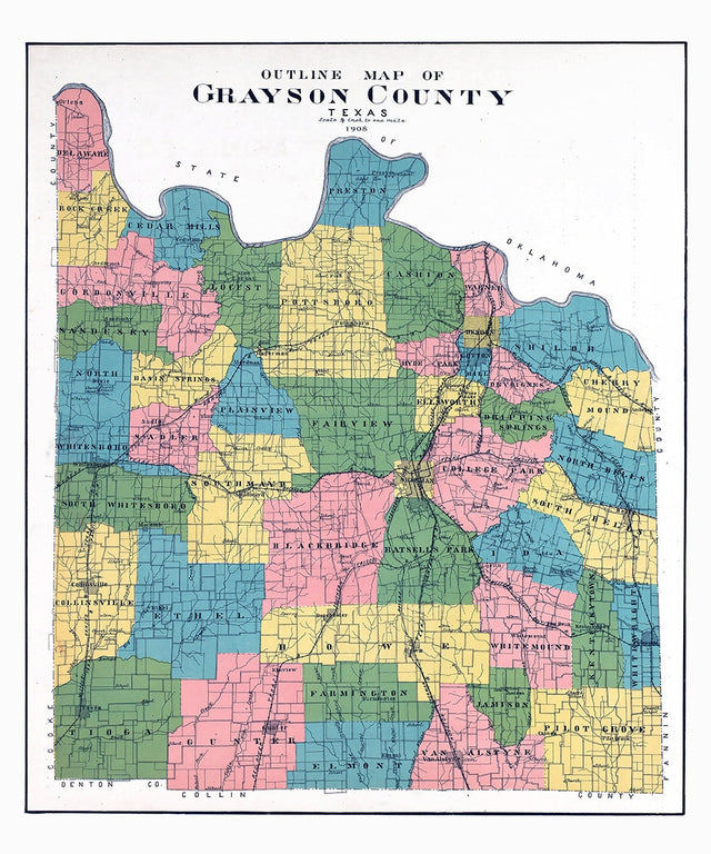 1908 Map of Grayson County Texas