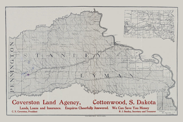 1910 Map of Stanley and Lyman County South Dakota - Heavy Weight Matte is backordered and will ship as soon as it is back in stock.