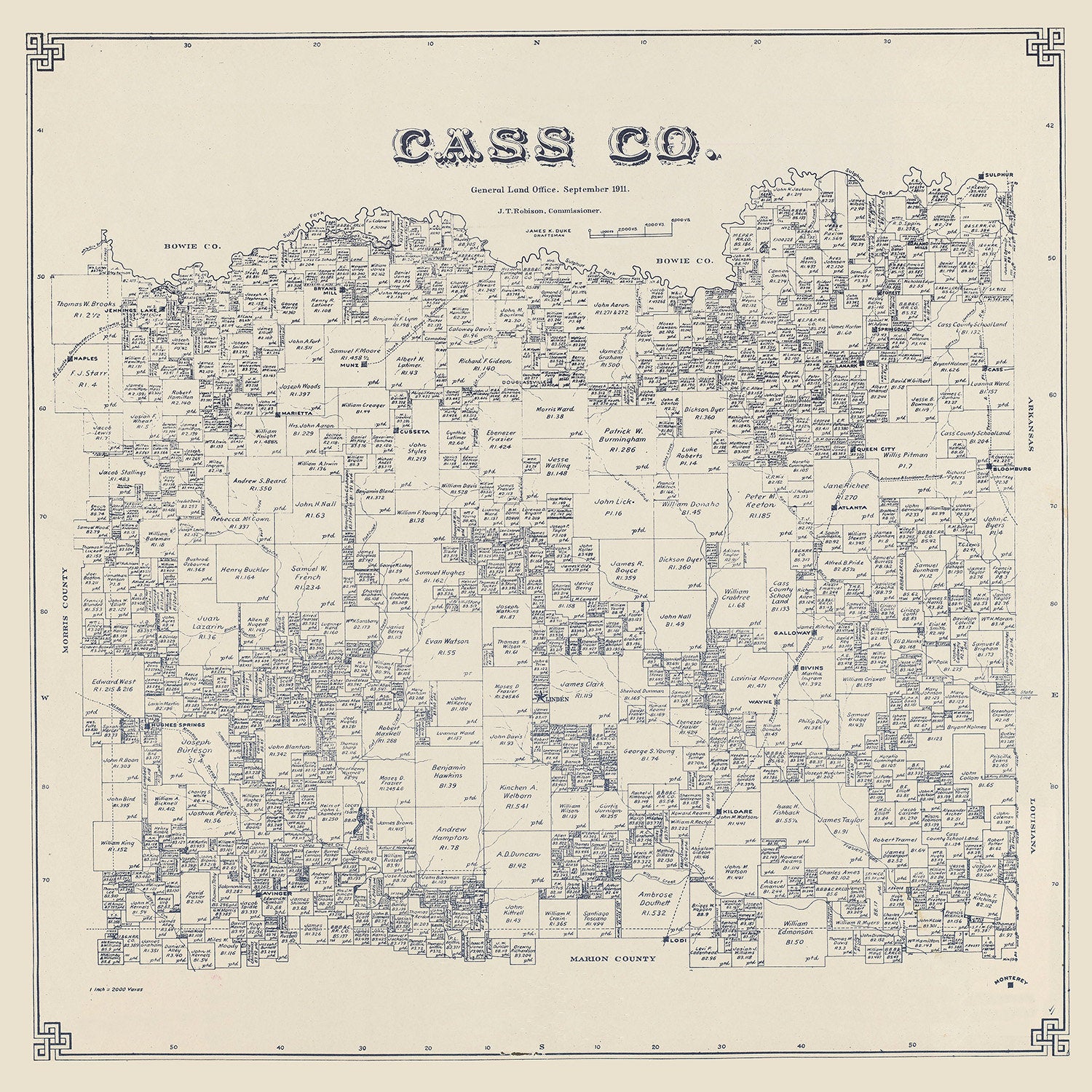 1911 Map of Cass County Texas - 20" x 20" Matte is backordered and will ship as soon as it is back in stock.