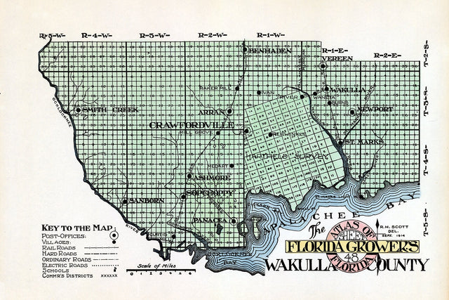1914 Map of Wakulla County Florida Crawfordville
