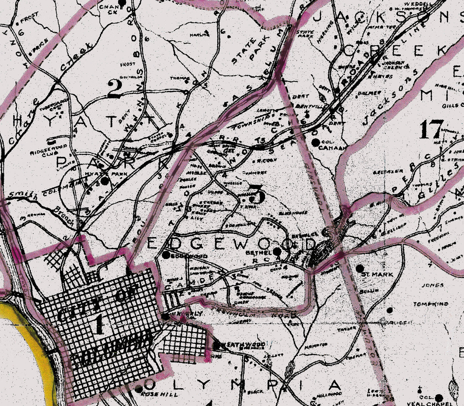 This map shows towns, roads, schools, rail roads, churches, names, building locations, and more.