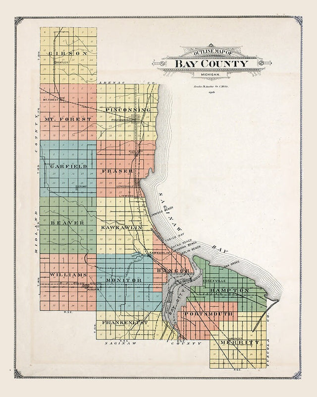 1916 Map of Bay County Michigan - 16" x 20" Matte is backordered and will ship as soon as it is back in stock.